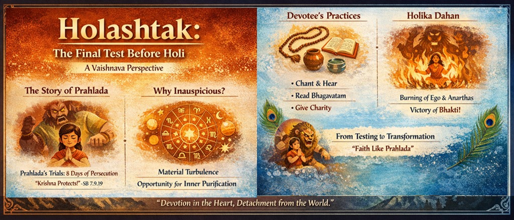 Rather than seeing Holashtak as a restriction, the Vaishnava tradition embraces it as a refinement period. The external world may slow down, but the inner life deepens. Chanting becomes more attentive, hearing more relishable, and association more meaningful.